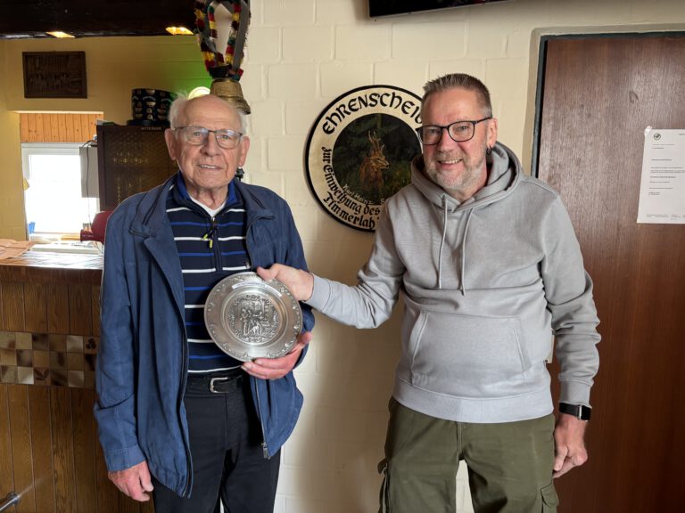 Alle wussten Bescheid, nur Wolfgang nicht: zwei Vertreter des Stadtsportbundes kamen zu uns ins Schützenhaus um Wolfgang zu überraschen und für sein vielfältiges Engagement für unseren Verein zu danken.