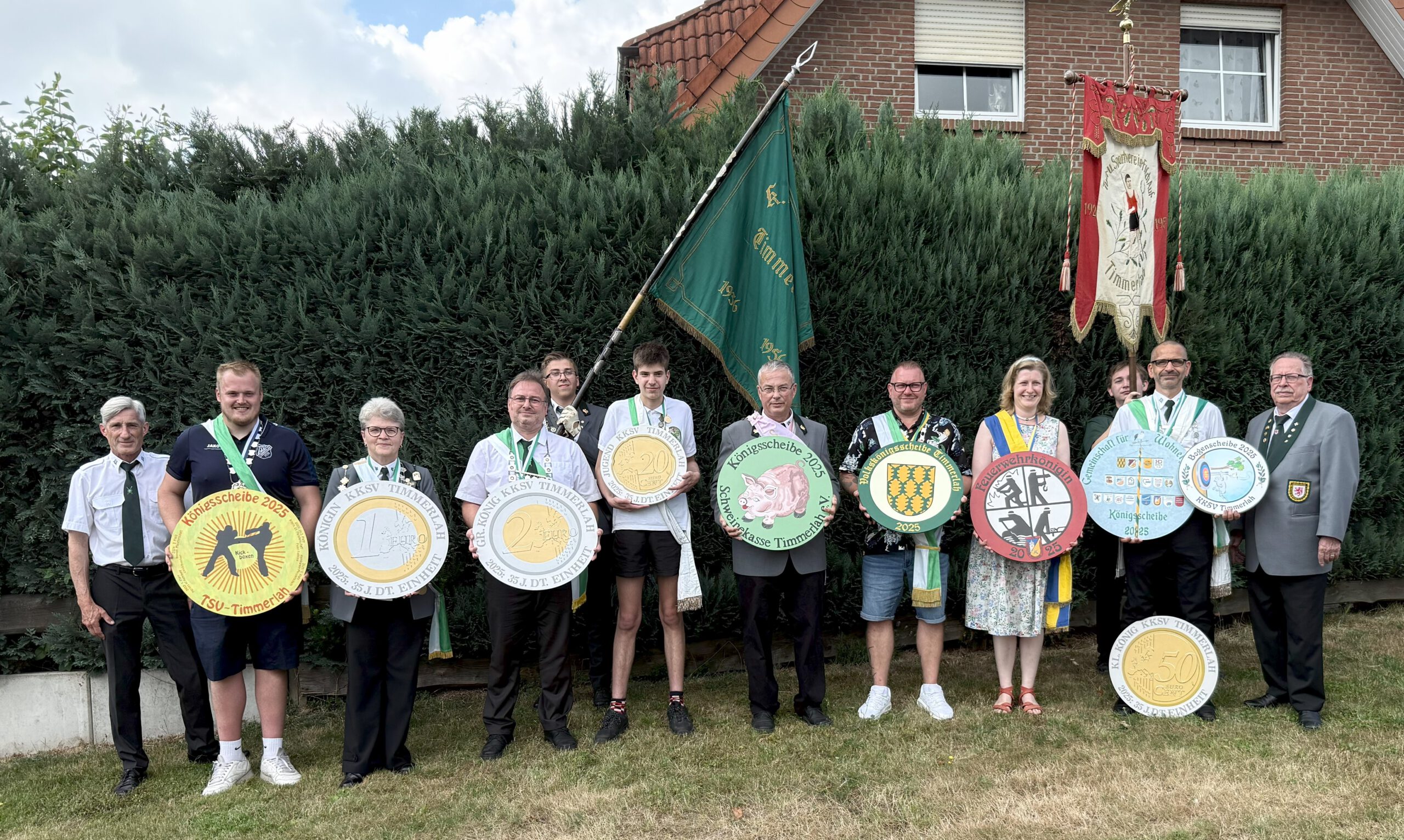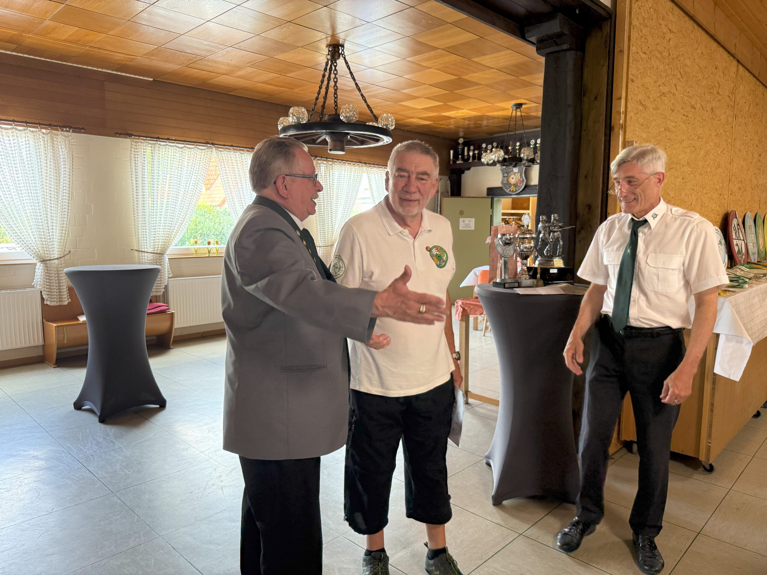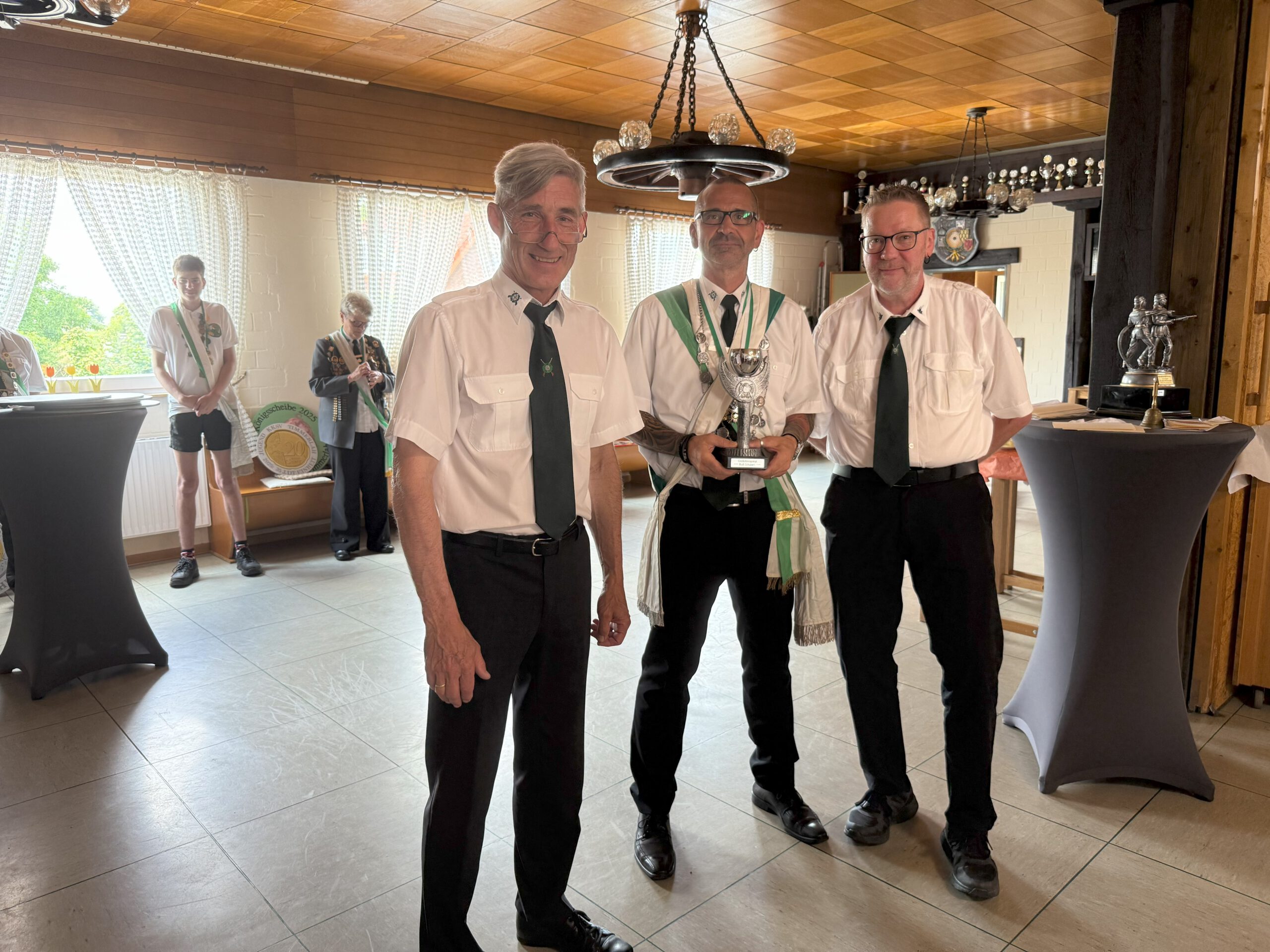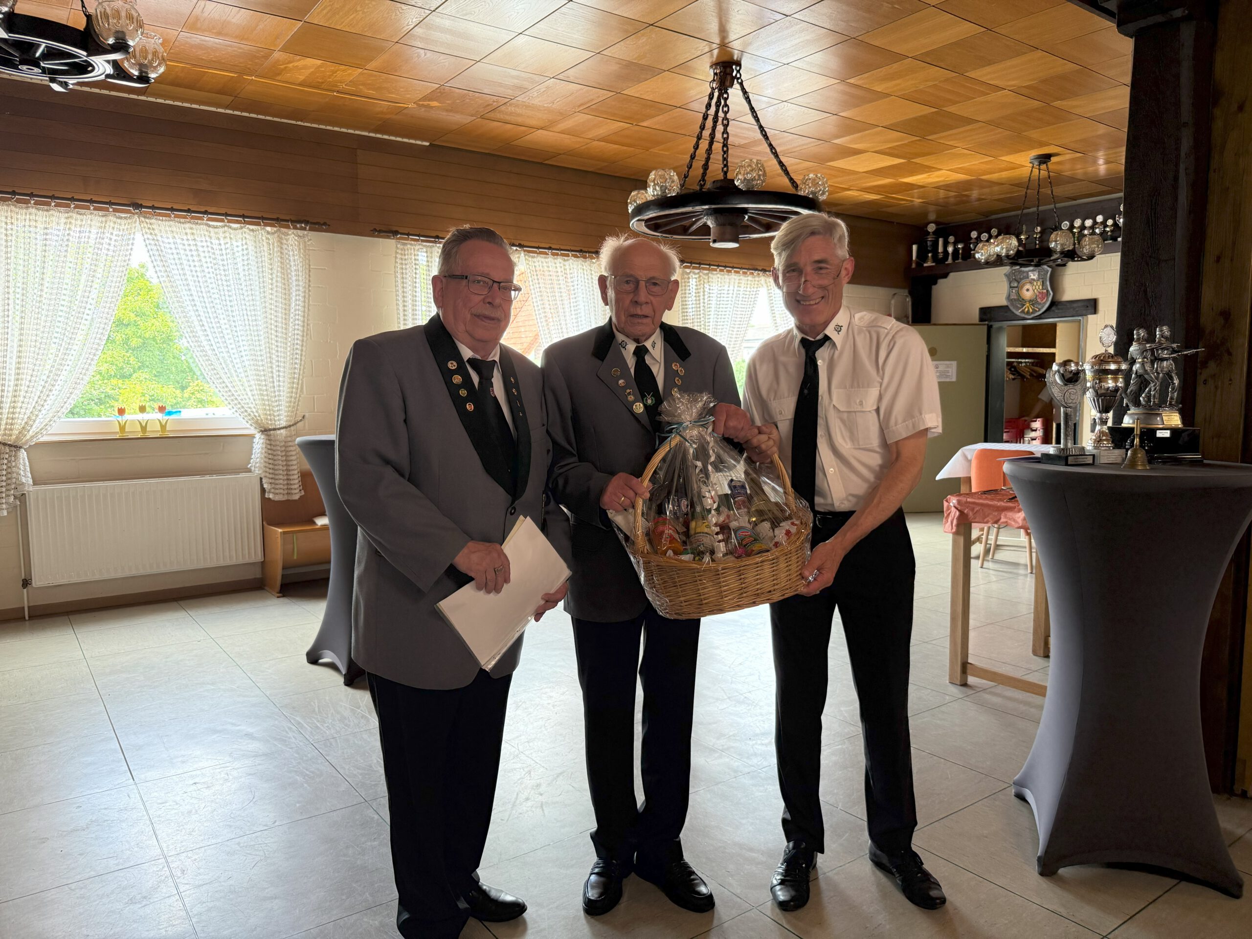 Bei den Königschießen der Vereine war die Beteiligung dieses Jahr moderat. Beim Schützenfrühstück war hingegen wieder volle Haus. Nach Ehrung unseres langjährigsten und ältesten Mitglied ‚Holli‘ Lau wurde auch Martin Tietze noch gedankt für seine 10-jähriges Engagement als Bogensportleiter, bevor dann die neuen Majestäten proklamiert wurden. Gut gestärkt durch das herzhafte Frühstück, welches wieder von der Familie Voges bereitgestellt wurde, ging es dann raus zu einem Umzug zum Annageln der Scheiben durch unser Dorf.